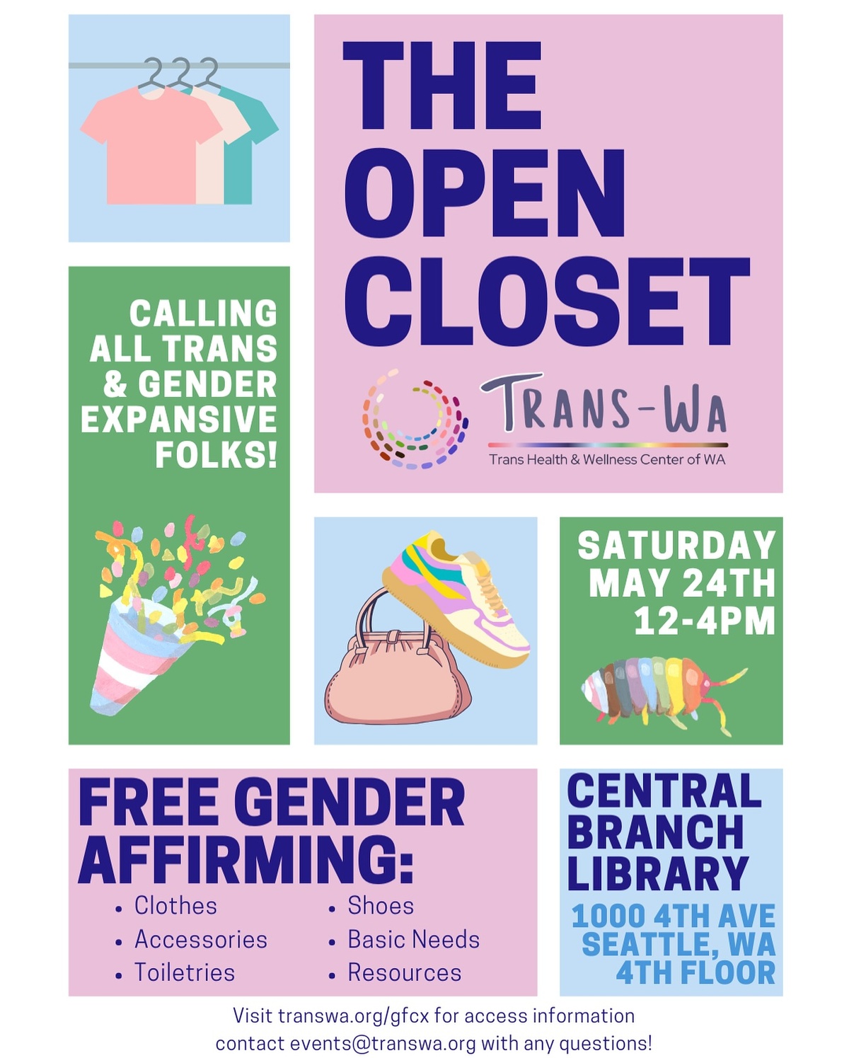 Wanted to invite you all to this upcoming pop up at the Seattle Central Branch Library in partnership with @trans_wa . Event is on Saturday, May 24th & we will be there handing out Narcan & other resources!!! Should be an amazing event ✨